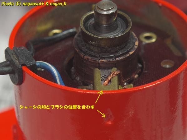 このときの位置は、モーターフレーム外に記されている印と、ブラシの位置を合わせておきます。