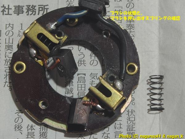ブラシプレートから、ブラシを出して、ブラシを押しているスプリングも出しました。そして、おかしいことになっていないか再度確認です。