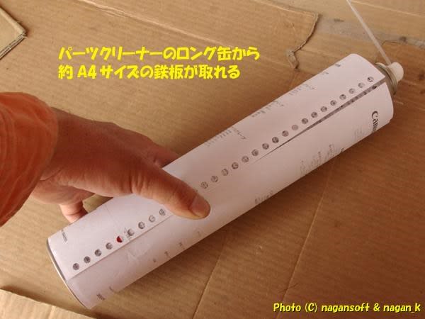 パーツクリーナーのロング缶からどれだけの大きさの鉄板が取れるかというと….
