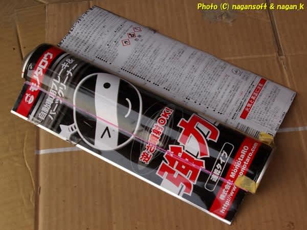 工場の見方「モノタロウ」さん印のパーツクリーナーですよ。それの使い切った空き缶です。つまり、空のスプレー缶です。廃品活用ですよ。