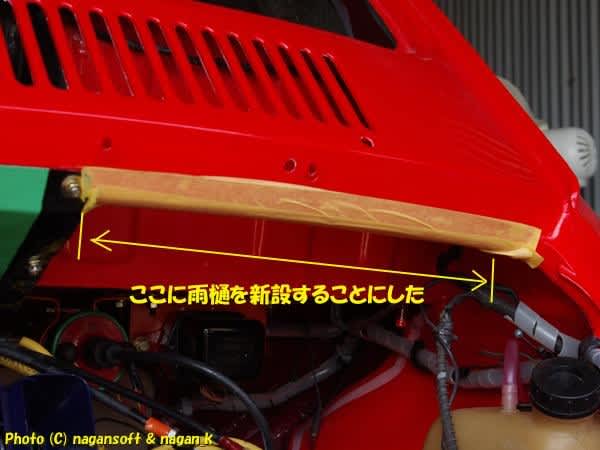 水が漏れてくるのなら雨樋で受けましょう。ということで、雨樋を新規製作です。