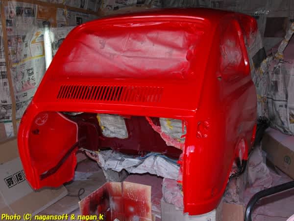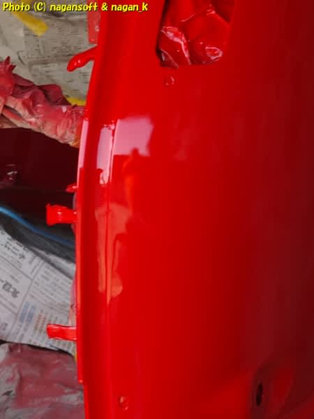 このまま塗装肌を放置して、車体前半分の塗装が終わって、車体をガレージから出してから太陽の下でコンパウンド磨きをしようと考えてます。