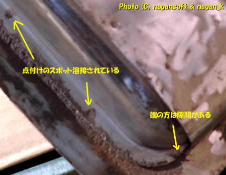 スポット溶接個所から遠い位置の端っこでは隙間が開いてます。