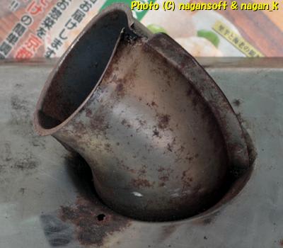 というのは、ちょうど御釜の接続部分の錆びはもちろんだけど、御釜の裏側にあたる、平たい面にも錆び穴があるのです。