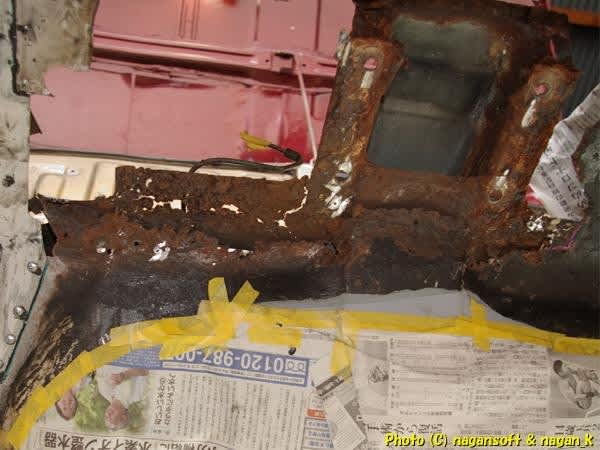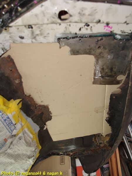その際に運転席床の錆クズ切れ端部分が型紙を動かすのに邪魔になりそうです。