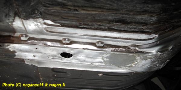 もちろんパテの下はサビ天国なわけで、車体裏からリューターをチョンと当てただけで「グサッ」っとなった次第です。