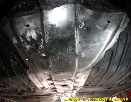 そして、車体下にもぐって「フロアセンタートンネル車体裏部分のお掃除」続きをします。