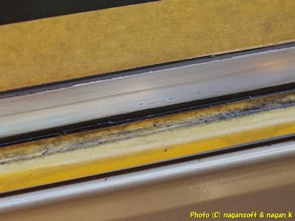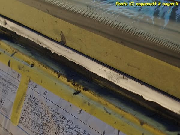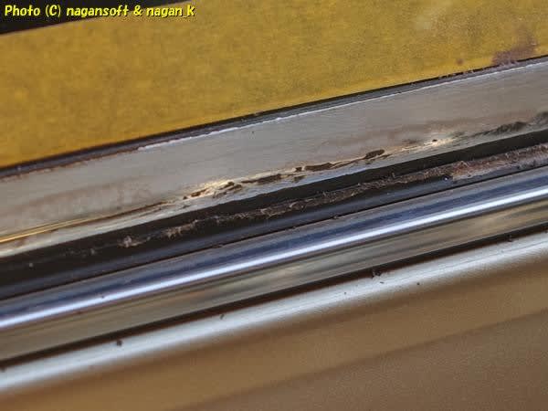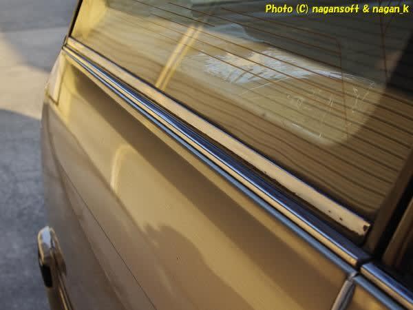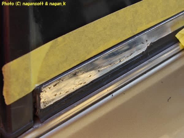 右側リヤクォーターガラス下のモール補修の続きです。