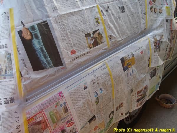 いつもの激貧仕事です。新聞紙マスキングですよ。