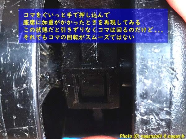魔改造されているので加重無しでもコマは回るのだけど、ストッパーカットされているだけでスプリングと思われるテンションがかかっているからか引きずりが酷い状態だった。