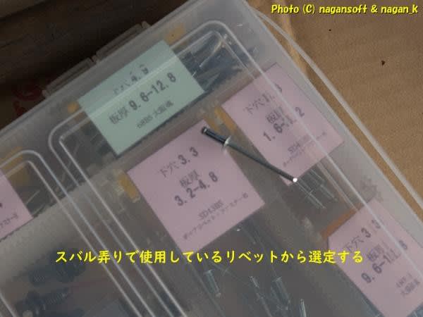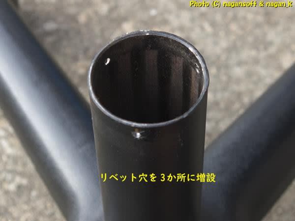 ドリルで穴を開けて、リベットカシメ箇所を3か所に増設です。