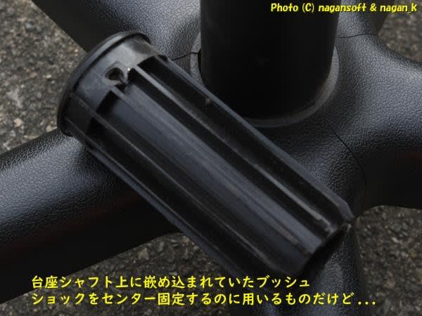 この台座シャフト上部にショックを中央固定するためのブッシュが嵌め実まれているているのだが….。