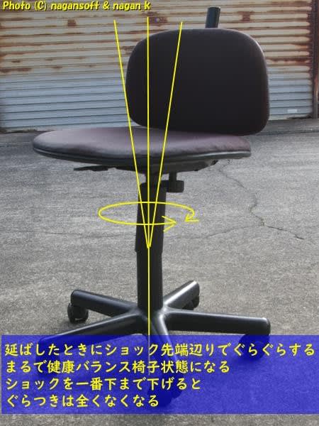 椅子を上にあげたときにショック先端位置と思われるところを軸起点にして座椅子が駒状にグラグラと揺れるのよ。座ると健康バランス椅子状態になる。