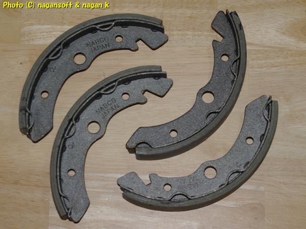 さらに、以前にフロントのブレーキシューを入手したときに、一緒に張替え素材用のリヤシューを入手してます。