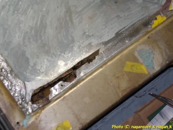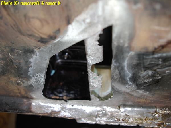 助手席側はもちろん錆びていたのですが、まだしっかりしています。無理にハンダするほどでもないのです。
