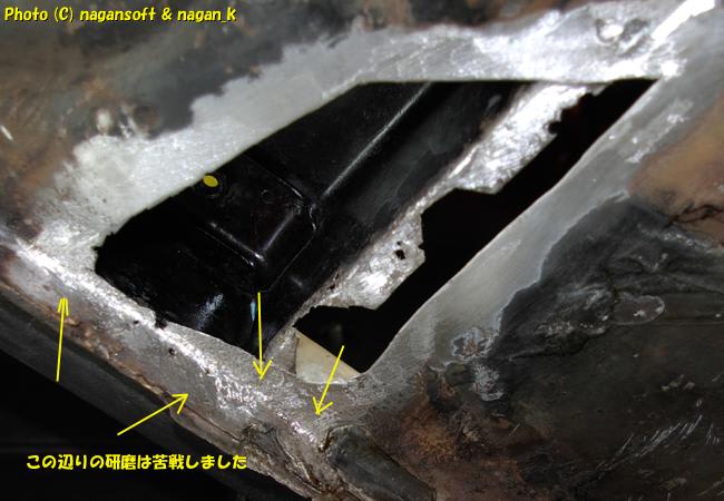 サイドシルエッジ部分はサビの巣窟なので研磨するのに苦労しました。