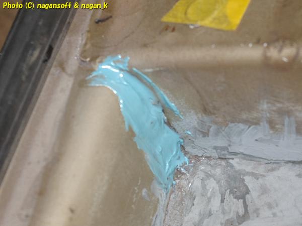 ここって、隙間が動くような箇所じゃないと思うのよね。だからコーキングではなくパテをお手軽に盛ることにしました。