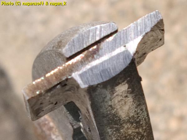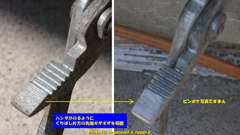 ということで、プライヤーの先端片方をディスクグラインダーで削りました。