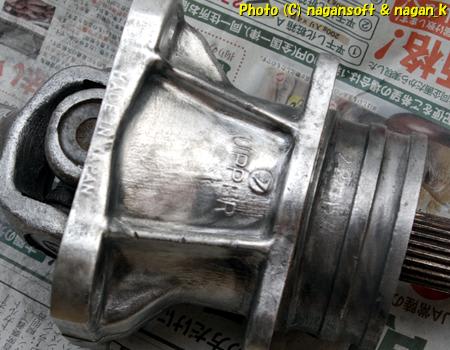 「リヤのアクスルシャフト、ハブ」の片方をさらに掃除していきます。