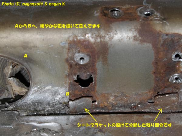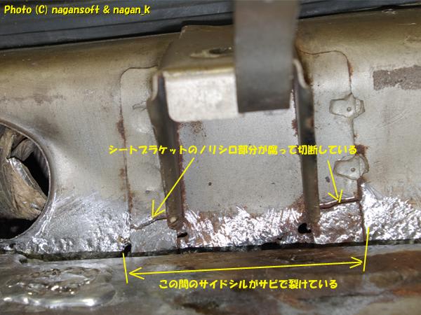 すると、サイドシルが歪んでいく、その歪みに耐えられず、サビで腐ったシートブラケットのノリシロ部分が切断ということでしょうか?