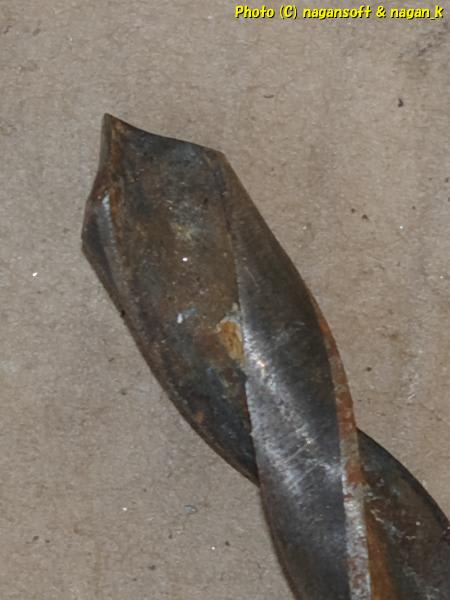 痴呆親父から引き継いだ雨水に打たれて赤錆が浮いてまったく切れなくなっているドリル刃コレクションより10mmを用意します。(キレイなドリルは鉄屑屋に売られて、使えなさそうなサビた道具をくれたのです)