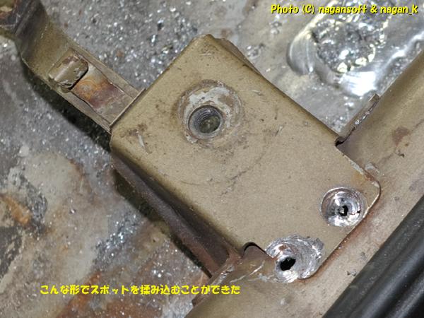 さらに、今回の場所は、えげつない電圧でスポット溶接されているのか、下地が熱で歪んでました。