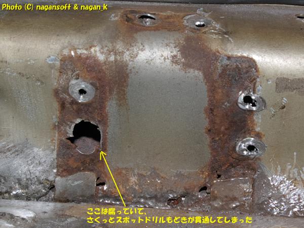 このスポット溶接をどうやって剥がすかです。今までのパターンだと、気の遠くなる時間をかけてリューターでほじくってます。