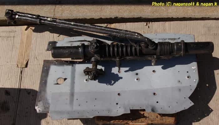 車体の錆クズトランク床を解体するときにステアリングシャフトの通し穴が何故にこんなに大きいのだろうと思っていたのですがこのリンク部分の逃げも兼ねているのね。