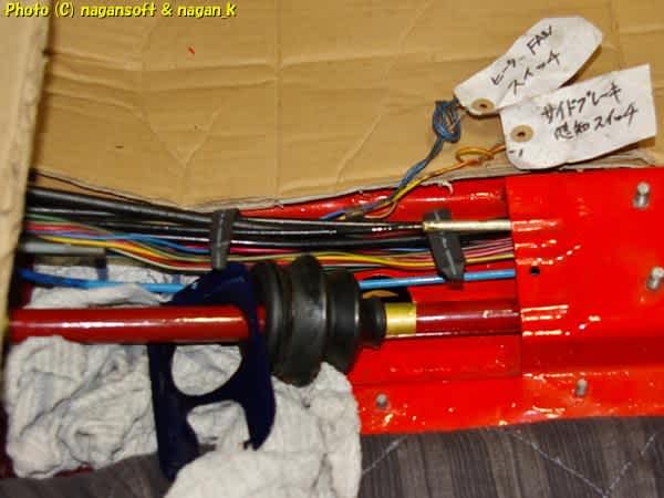 室内側のヒーター切り替え弁操作ワイヤーが必要なのね。とワイヤーを引っ張り出します。