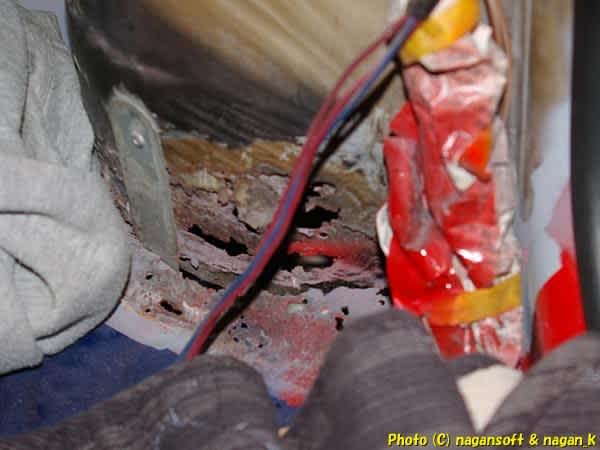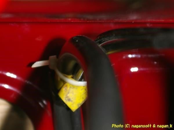エンジンルーム天井にワイヤーが接触しそうなしなさそうな案件です。