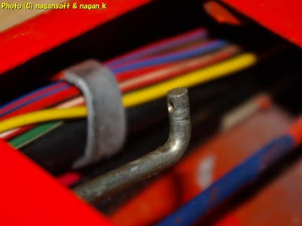 ワイヤー修理したときに皮膜を太らせたので、車体のワイヤークリップに納まりません。