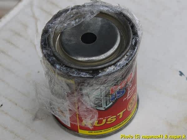 錆取りした鉄板合わせ隙間部分に錆転換剤(レノバスプレー)を吹き込みました。