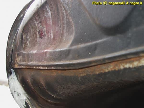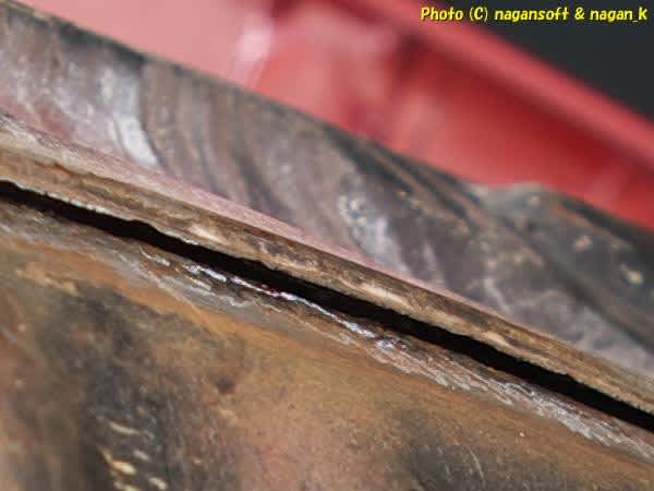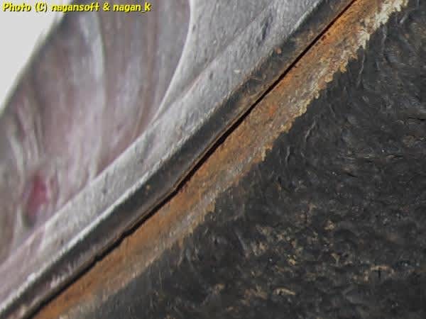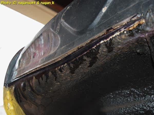 鉄板が重なっているのですが強度だしリブ折りで空間があり、その空間が錆パラダイスとなっているんです。