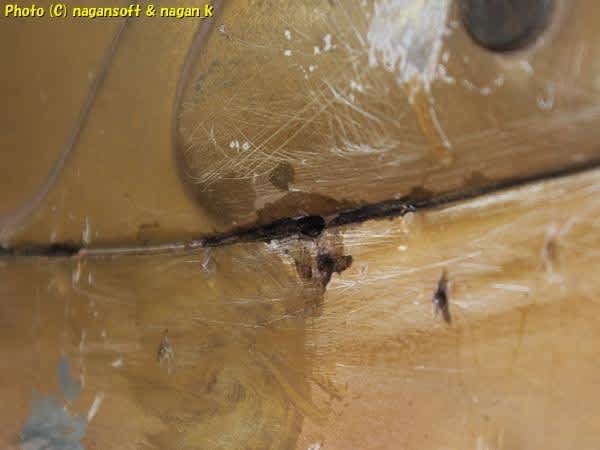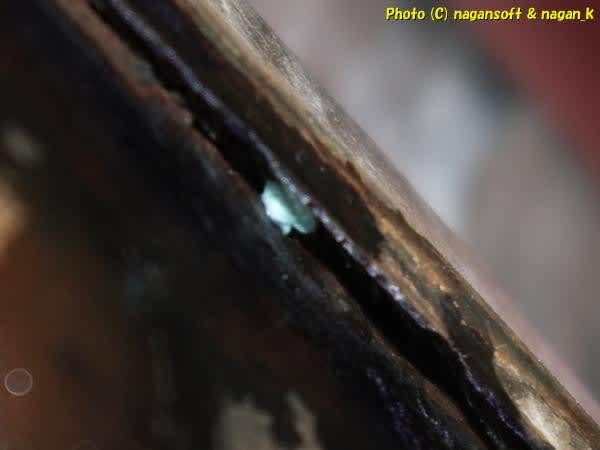 小さい虫食い錆穴貫通してまして、以前に錆転換剤を入れてそのまま放置しています。