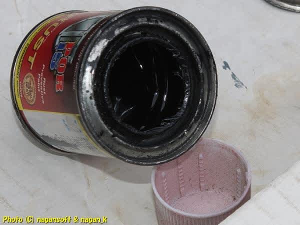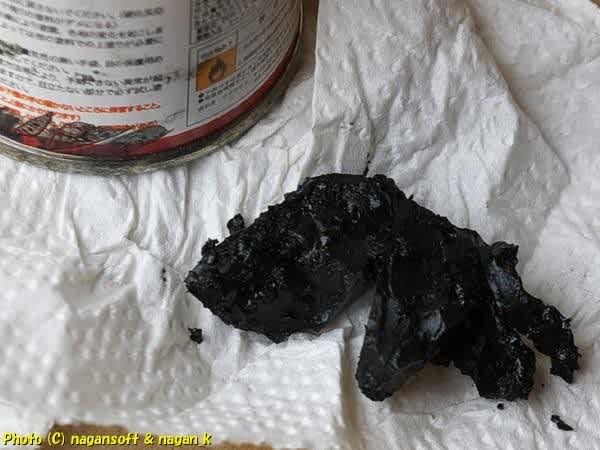 このパテですが、1年何か月ぶり?に持ち出してます。2液を練り練りするのですがどうも感触がおかしい。というか使いかけパテもずーっと放置しているからなー。