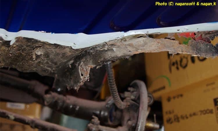 私の車体はセンタートンネルの先頭側が裂傷になってました。