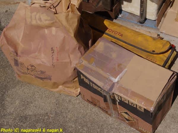 謎の紙袋は近所の主婦からもらったウエスが大量でした。もちろん主婦の香りつきだったやつですね。この冬の作業で活躍することになります。