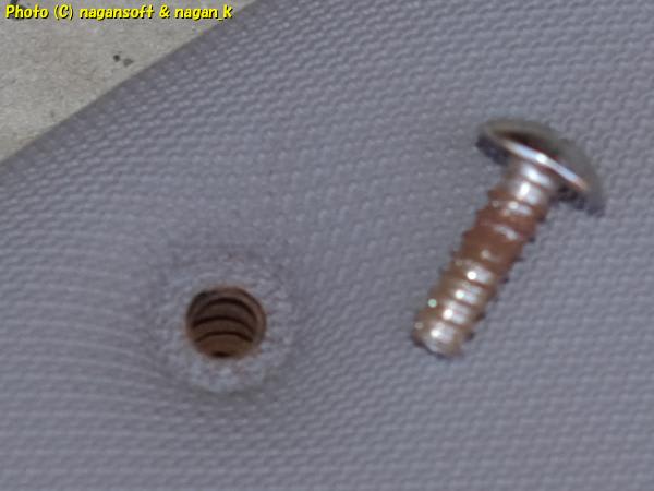 ネジ穴から覗き込むと、もちろんメネジ側も錆びているというか、中の金具が凄く錆びています。