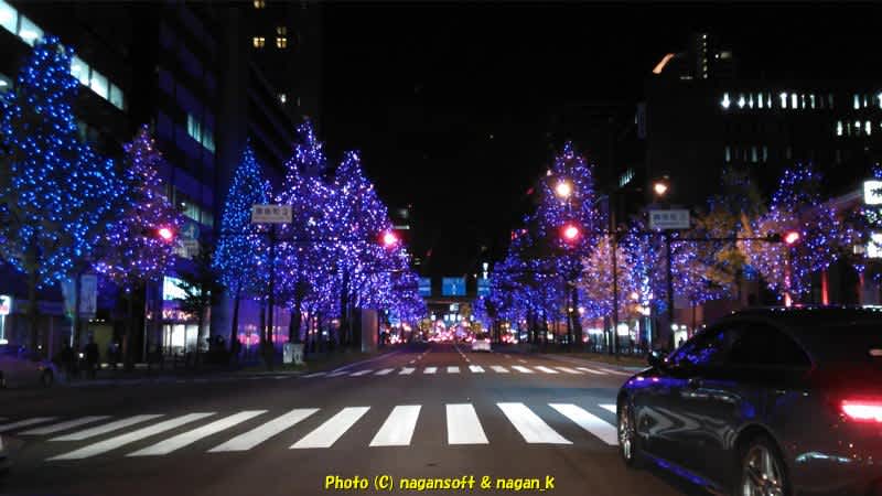 大阪御堂筋のナイトイルミです。信号待ちのタイミングで撮影です。
