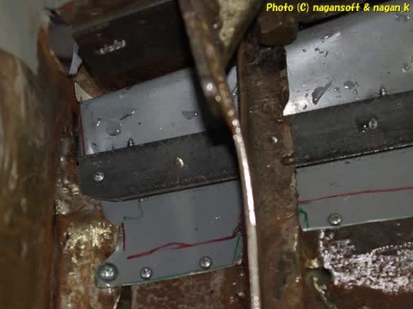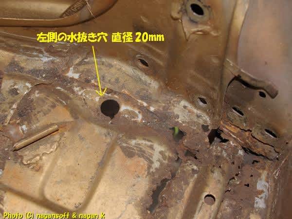 右側はバッテリーが鎮座する部分で、水抜き穴がバッテリー呼吸穴(バッテリーが排出した水素の逃げ口)を兼ねていると思います。