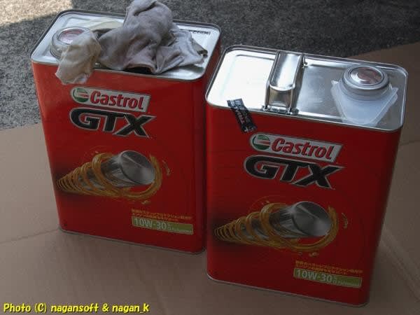 もちいるオイルはいつもの安い赤いやつ。Castrol GTX 10W-30 です。