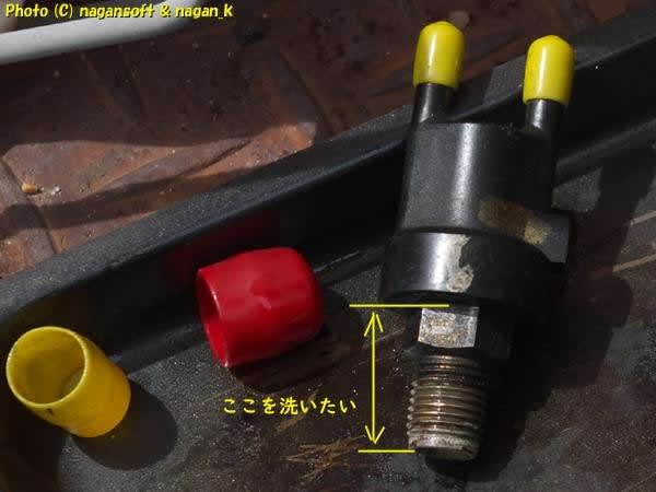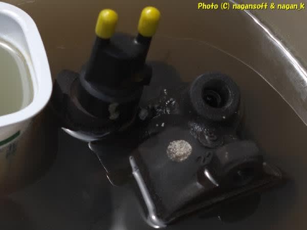 中身はどんな仕掛けなんだろう?圧がかかると栓が開くだけバルブになっているんだろうと思うんだけど….。もしや内部にゴムむ部品があったりするのだろうか?とかを考えるとポンプ内部に突き刺さる部分だけをドボンしてあげたいと思う。