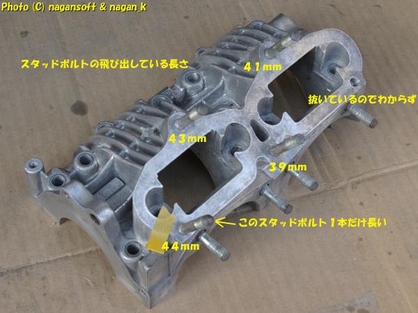 パーツリストで確認すると、インマニのスタッドホルトは2種類で、短い方が4本、長い方が1本です。
