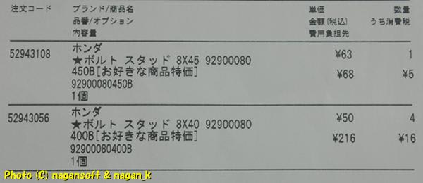 スタッドボルトといえばバイクの部品でしょ。バイクメーカーで昔ながらの部品を世界規模でサポートしてそうなのはホンダかな?という私の勝手な妄想でホンダの部品を何点か試し打ちで購入してみました。