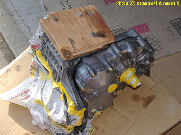 で、エンジンの底面です。いまならエンジンブロックをひっくり返して底面を触ることができる最終チャンスと考えます。