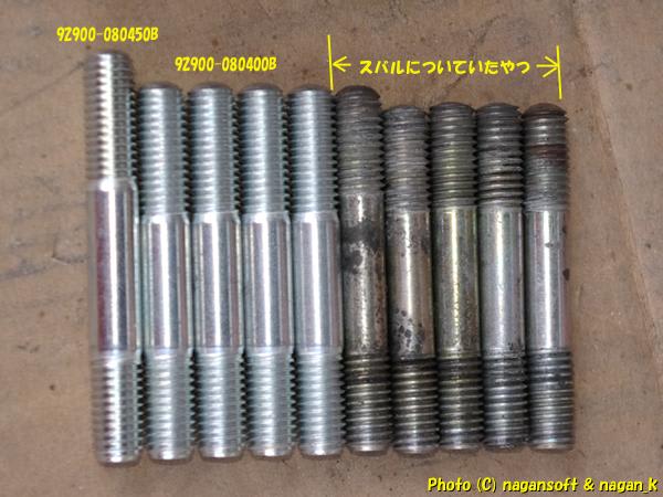 ホンダのスタッドボルトはこの次に小さいやつ(#92900-080350B)が5mm程短くなるのです。