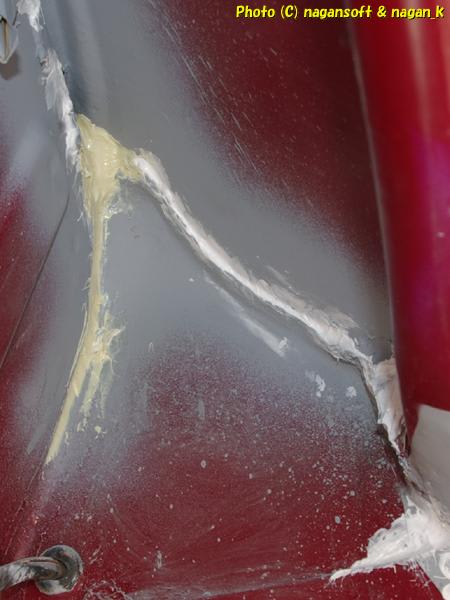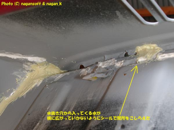 リヤガラスはめ合い部の水抜き穴からエンジンルーム内へ水が来るのですが、その水が合わせ隙間を横へ流れていくのを制限したいのです。