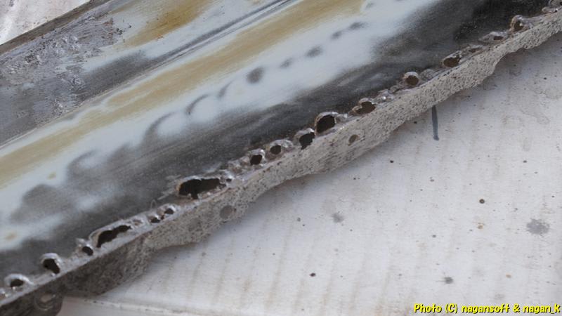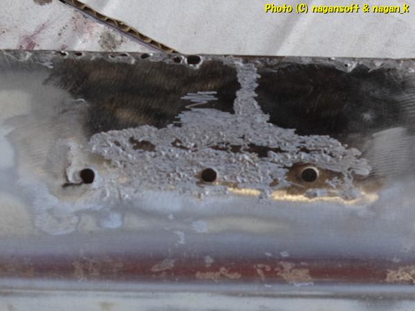 上鉄板との貼りあわせ耳部分は、腐ってへにゃへにゃになっていた鉄板を切除していくと、こんな有様になりました。