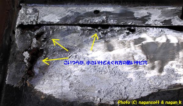 このサビ穴は面積は小さいのだけど、なんかめんどくさそうな感触なのよねー。