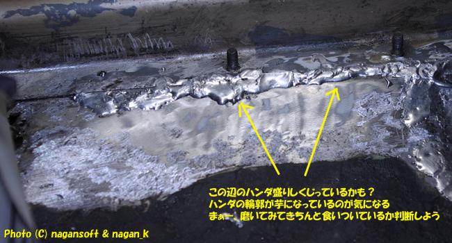 サンダーで余剰ハンダを削って磨いてみて、この部分がしっかりハンダ食っているか判断することにしよう。
